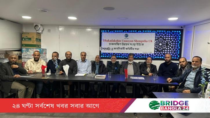 ঢাকাদক্ষিণ উন্নয়ন সংস্থা ইউকে’র কার্যনির্বাহী কমিটি (ইসি) ও উপদেষ্টা কমিটির যৌথ সভা বুধবার সন্ধ্যায় পূর্ব লন্ডনের একটি রেস্টুরেন্টে অনুষ্ঠিত হয়েছে। সভায় সভাপতিত্ব করেন সংস্থার প্রেসিডেন্ট আব্দুল লতিফ নিজাম এবং সভা পরিচালনা করেন জেনারেল সেক্রেটারি আব্দুল বাছির।